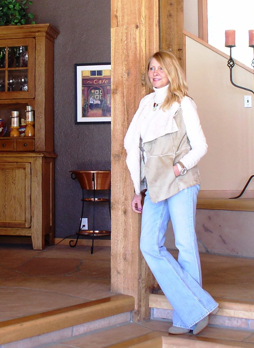This post highlights my take on the 70s fashion! My booties are comfortable and casual. I have worn them with everything from jeans to maxi skirts. In this post I am wearing them with an old pair of flared jeans, a cream turtleneck and a shearling vest. For jewelry I have on a multi-colored amber necklace, which you can't see very well but it reminds me of jewelry from the 70s. Most of the elements of my outfit could be found on someone during the 70s yet it fits right in with the fashion of today, especially here in the mountain environment. I love that it seems almost anything goes in fashion. If you feel good, you probably look good, right?