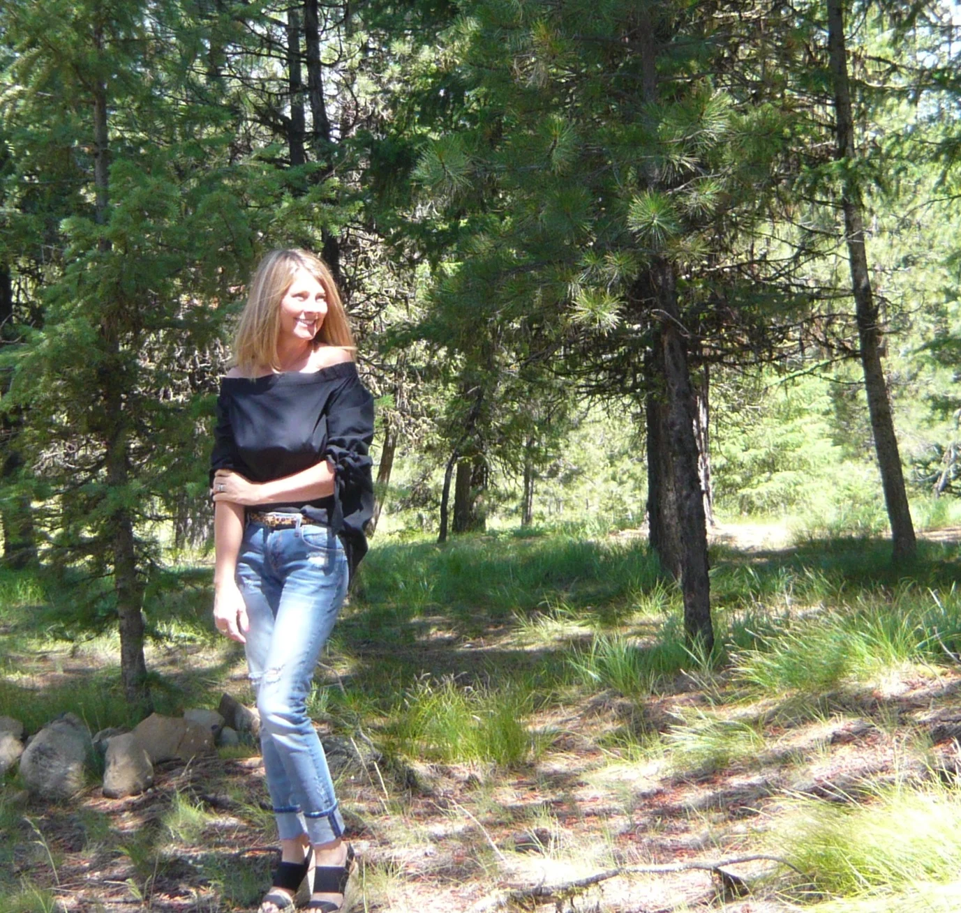 I have to talk about this top. You have probably seen it everywhere on everyone. I have been eyeing it for months. The first version I saw was a Tibi and cost way more than I wanted to pay. Soon however, I was seeing other brands making it, but it would go out of stock faster than you could hit "checkout!" Last week, it came back in stock and I decided to get it, in black, and white. I love how you can return things to Nordstrom so easily and free. I always know if it doesn't work I can return it. I won't be returning this top and here is why. It is well made with nice fabric (not see through), it fit perfectly so was TTS; I have on a small. The main reason I will keep it, is that it is comfortable. I have a few off the shoulder tops and if I raise my arms for anything they fall off the shoulder, slide up or down or both. This top raises a little but stays in place so I am not adjusting it all the time. Also, this top rests higher on my shoulders; it doesn't sit way down on my arms making me feel like it is falling off. Another thing I love is the sleeves. They tie so you can wear the sleeves long where they look bell shaped or tighten the ties so they stay up higher on your arm. Absolutely a keeper! It is tunic length on me, so I can wear it out or tuck it in somewhere if I choose. A very versatile top!