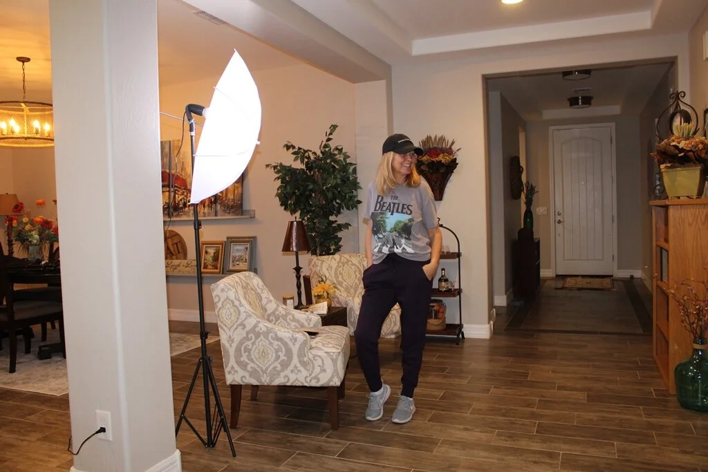 No make up day, like most days. Shoes old Nike’s, joggers old Costco couture, tee old Walmart, hat old. Linking my exact lighting kit.