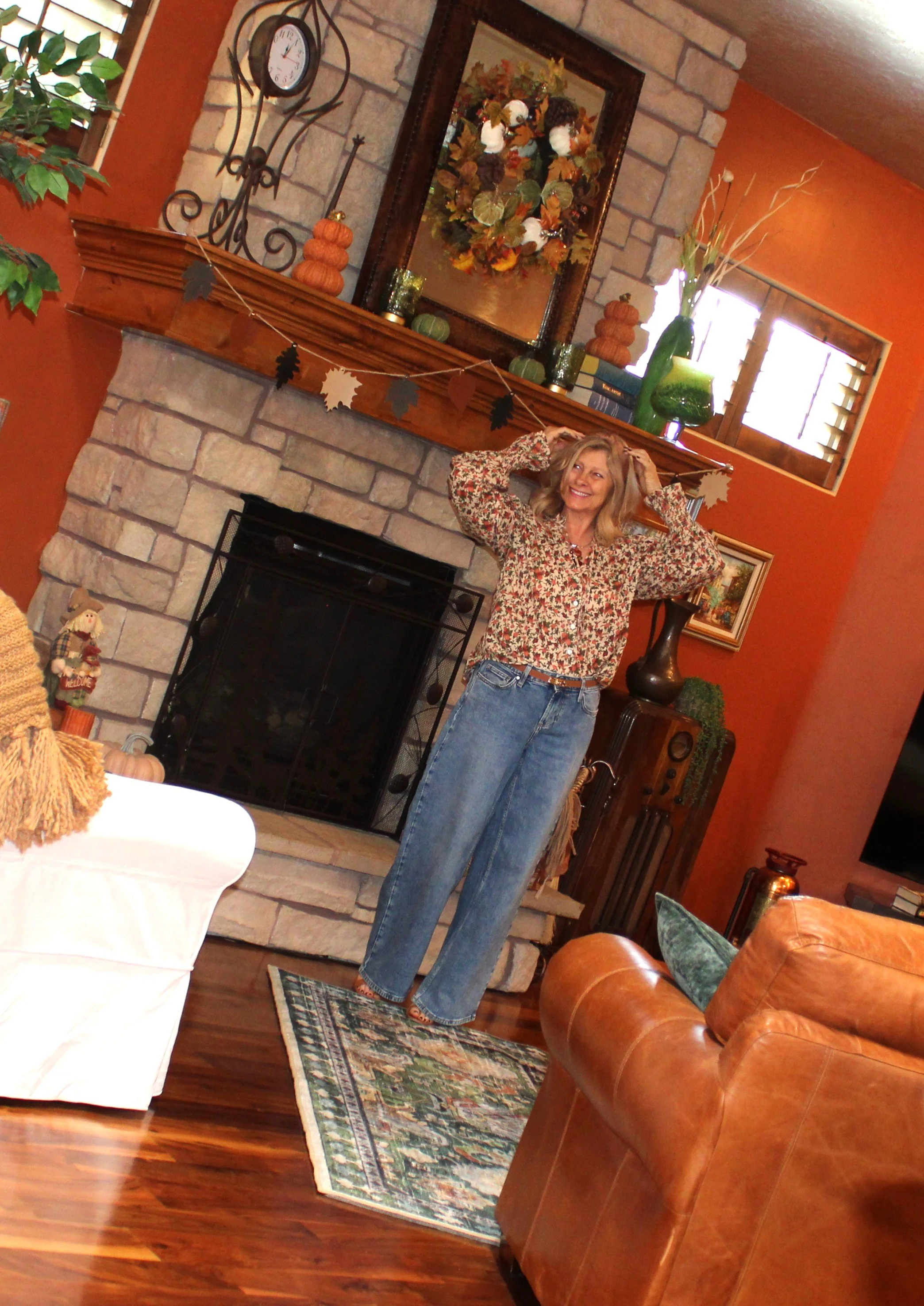 I have this top in two colors because I love it so much. Even though it is several years old you can still find it on Poshmark. The jeans are still available. They run big so I sized down and could have sized down another size. I love the fit so much I have them in this darker wash, the lighter wash and in the black. I wear them almost daily. They are cute with a little heel but also my sneakers.